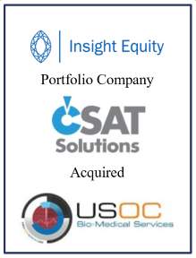 Third Coast Capital Advisors served as exclusive financial advisor to CSAT Solutions Holding, a portfolio company of Insight Equity, in its acquisition of USOC BioMedical. Our Acquisition Search services included identifying the target and making contact with its owner, as well as providing assistance on valuation, transaction structure and the negotiation and closing of the transaction. This transaction represents a good example of our ability to identify and execute proprietary, strategic add-on acquisitions for private equity portfolio companies.